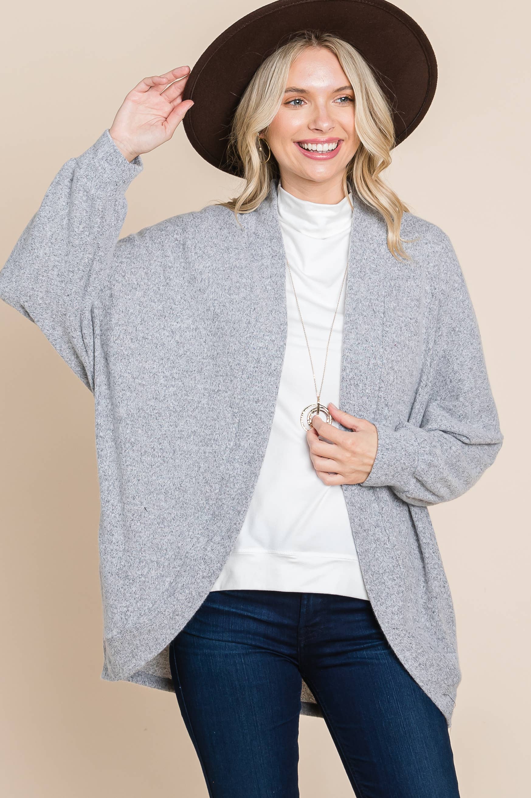 Two Tone Open Front Warm and Cozy Circle Cardigan with Side Pockets, Fabric is Made in Korea