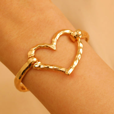Metal Tone Structured Heart Bracelet- Approximately 2.5" Diameter