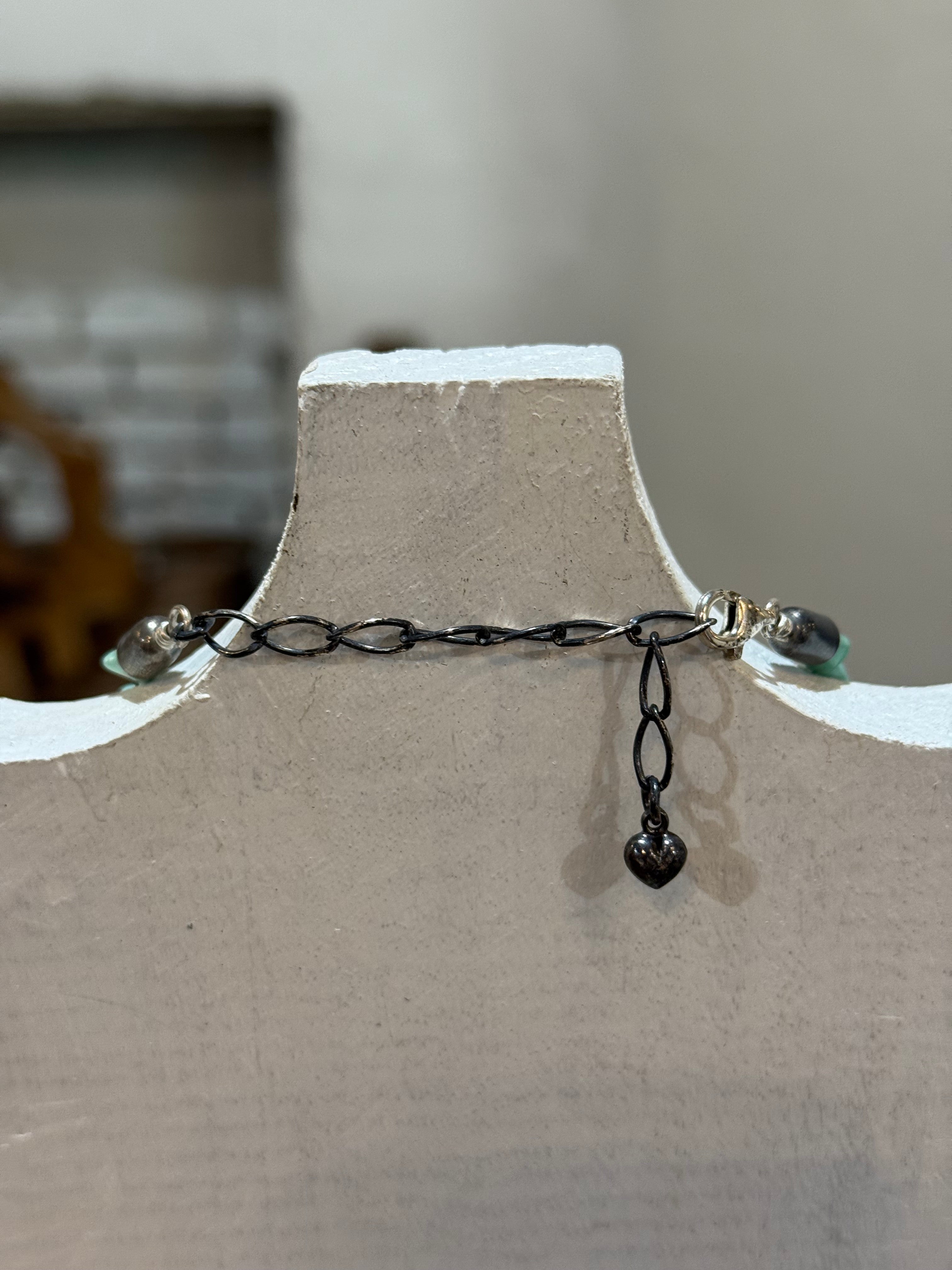 Amazonite and Hematite Necklace. 20 inches in length. Amazonite is a stone of peace, truth and harmony. It is soothing and aids communication.