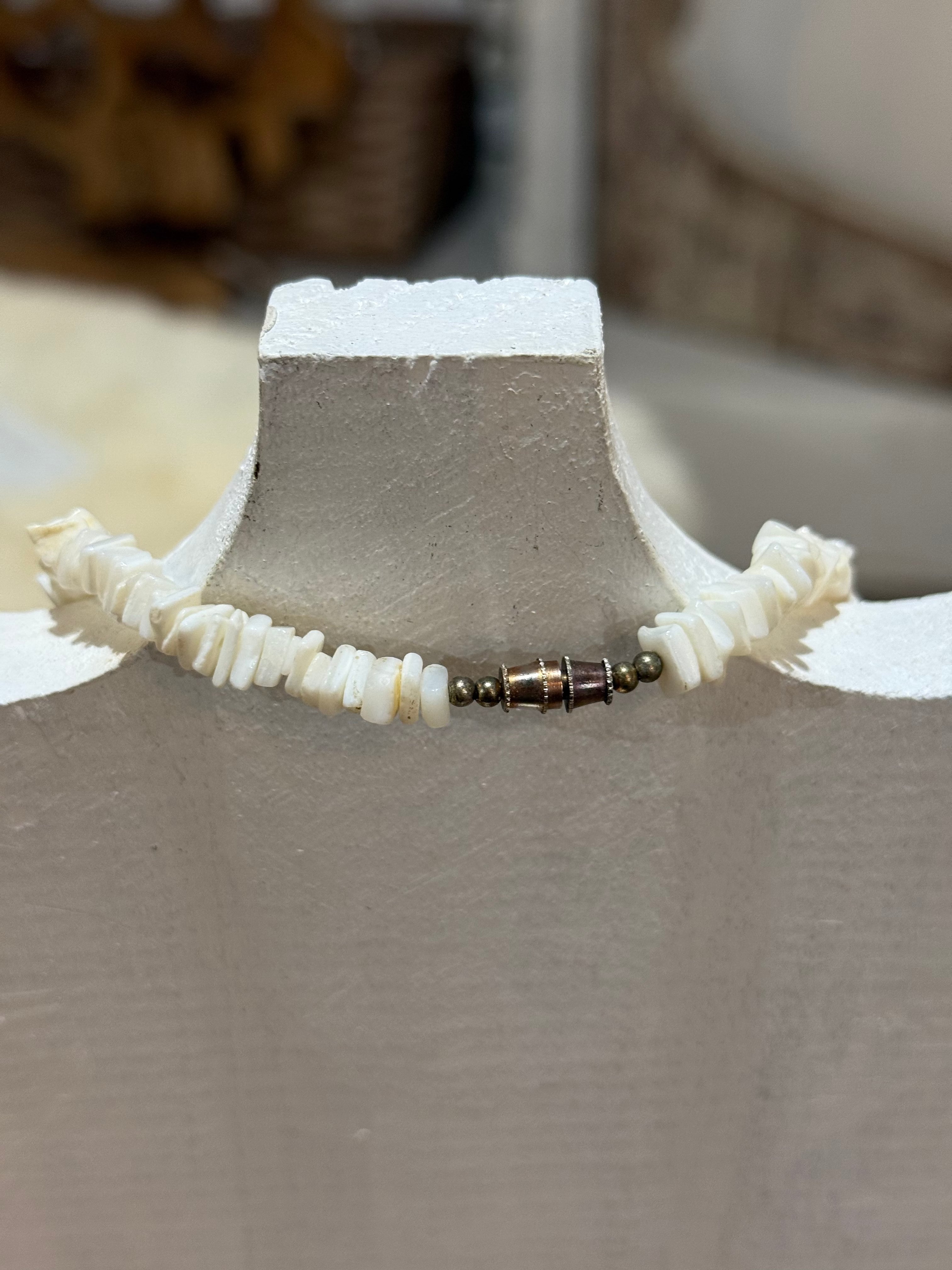 Delicate shell beads. A vintage necklace that is 16 inches in length