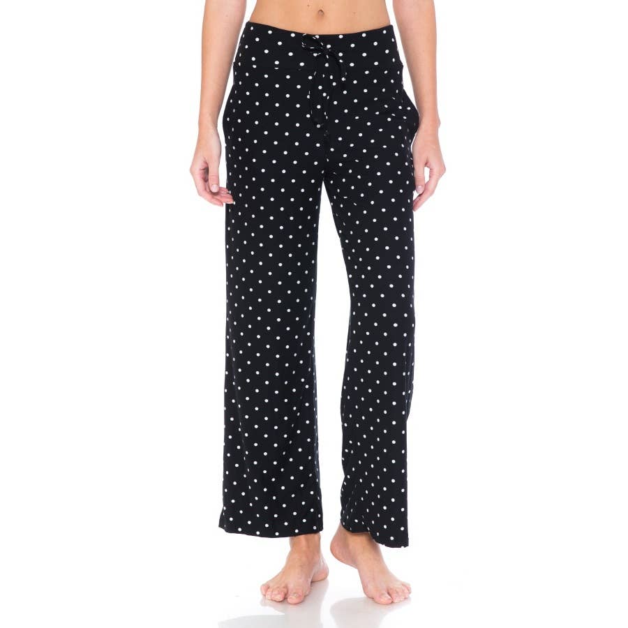 Black with White Polka Dots on Buttery Soft Pajama Pants with Drawstring
