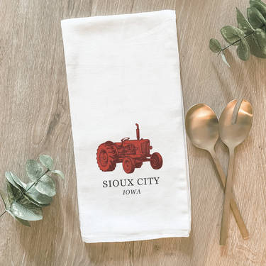 Our cotton tea towels are heavy-weight, highly absorbent, and lint-free FEATURES • 100% cotton, white white flour-sack tea towel • Size: 27" x 27" approx. • Printed with with water-based ink (DTG Printed) • Machine-washable, tumble dry. • All items are hand drawn, designed, and produced in Hartland, Wisconsin Keywords: Custom Farm, Custom City and State, Farming, Tractor, Farmhouse Modern, Cotton Tea Towel, Kitchen Towel, Hand Towel