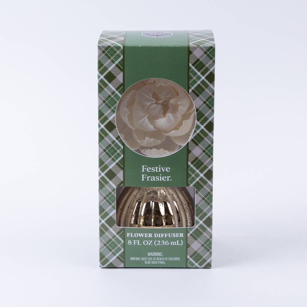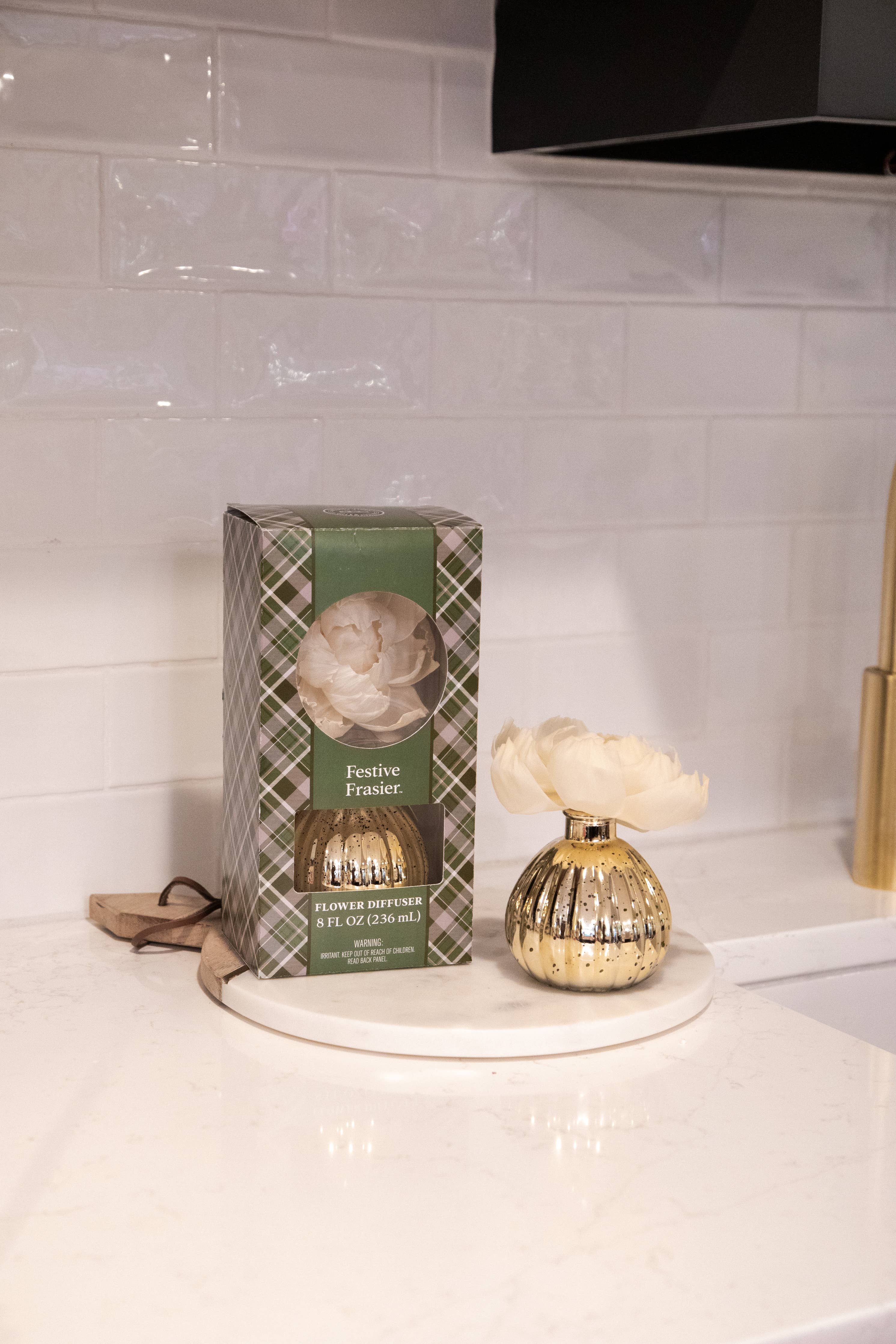 Add a touch of glamour to your holiday decor with our Holiday Flower Diffuser, featuring a shimmering gold and silver mercury finish that exudes elegance. Enjoy the beloved fragrance as it infuses your space with warmth and cheer. Lasting over 60 days, the neutral-colored flower adds beauty to any setting, making it the perfect accent for your festive celebrations.