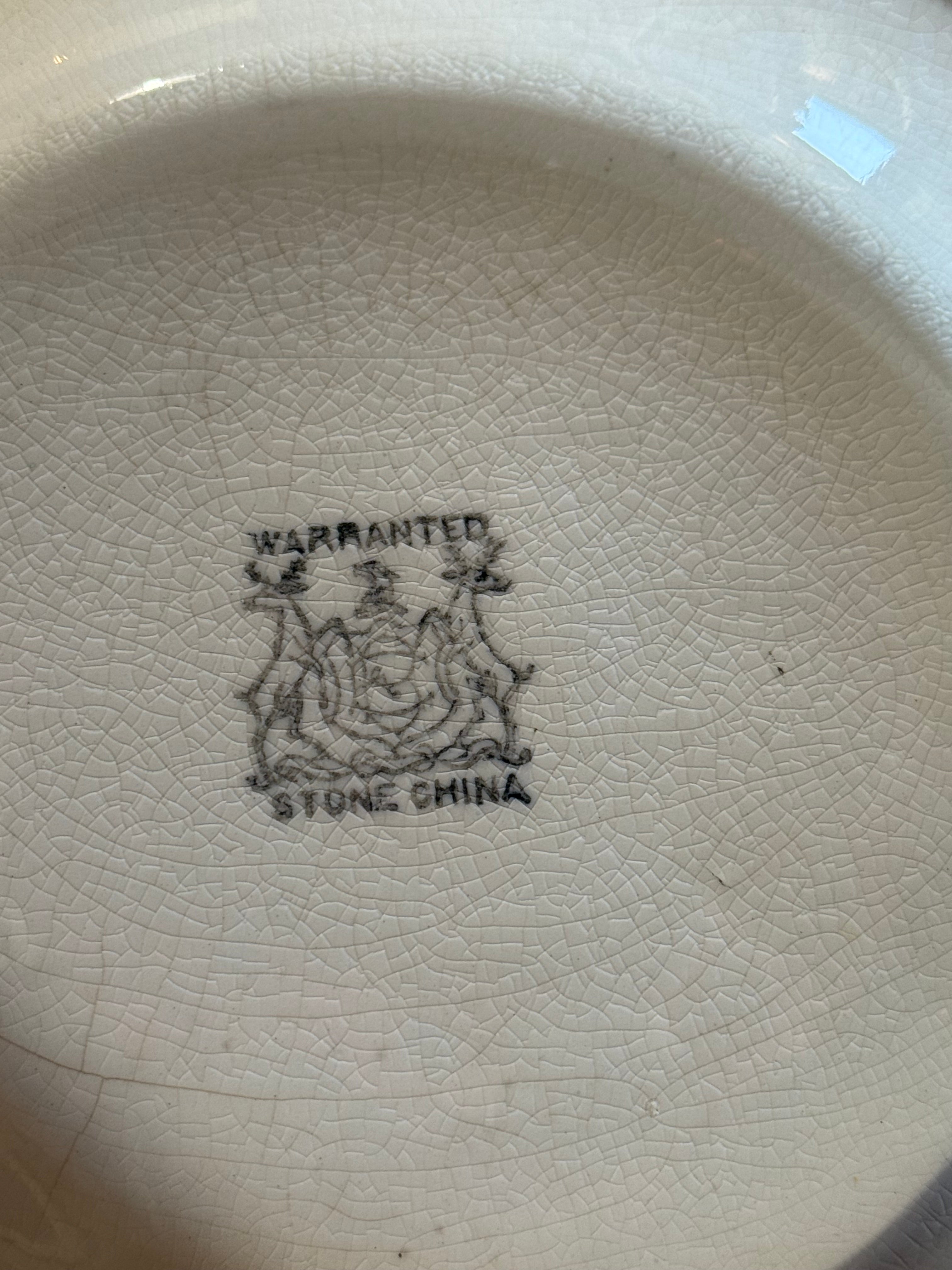The Edwin Bennett Pottery Company was founded in Baltimore, Maryland, in the 1840s and operated until 1936. This type of set was common in homes before indoor plumbing became widespread. Many pieces from the company are marked on the bottom with "Warranted Stone China".