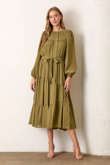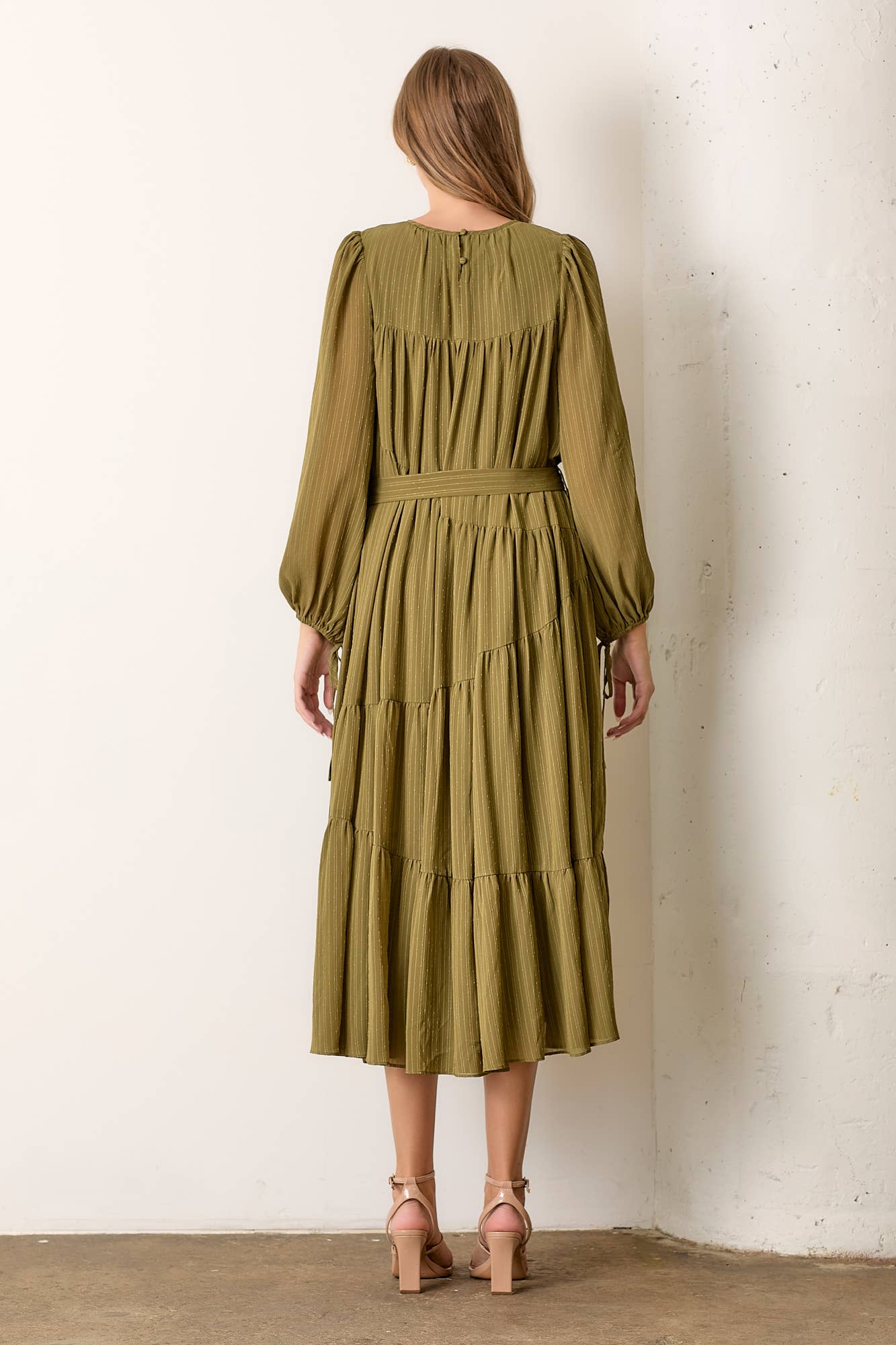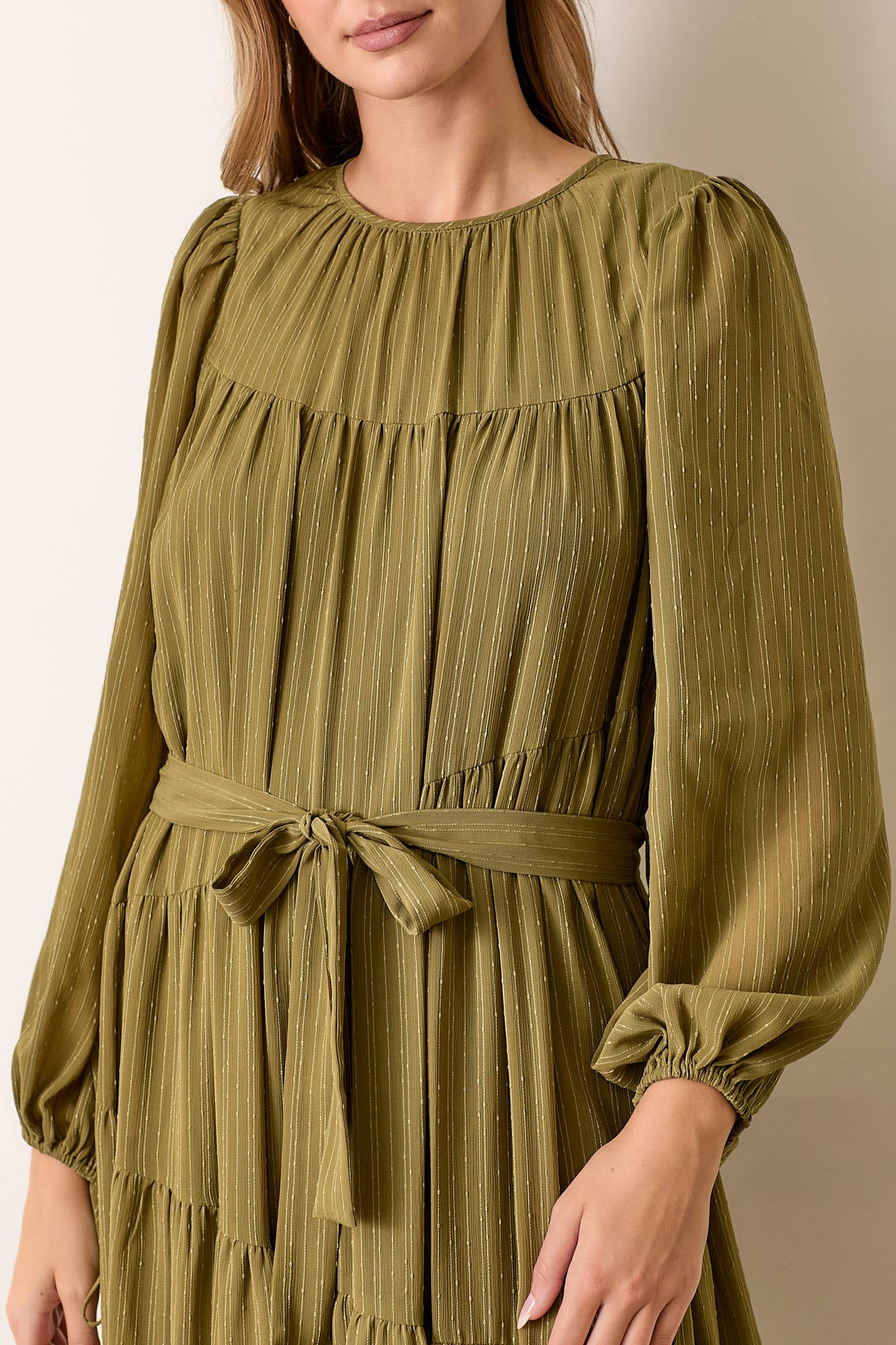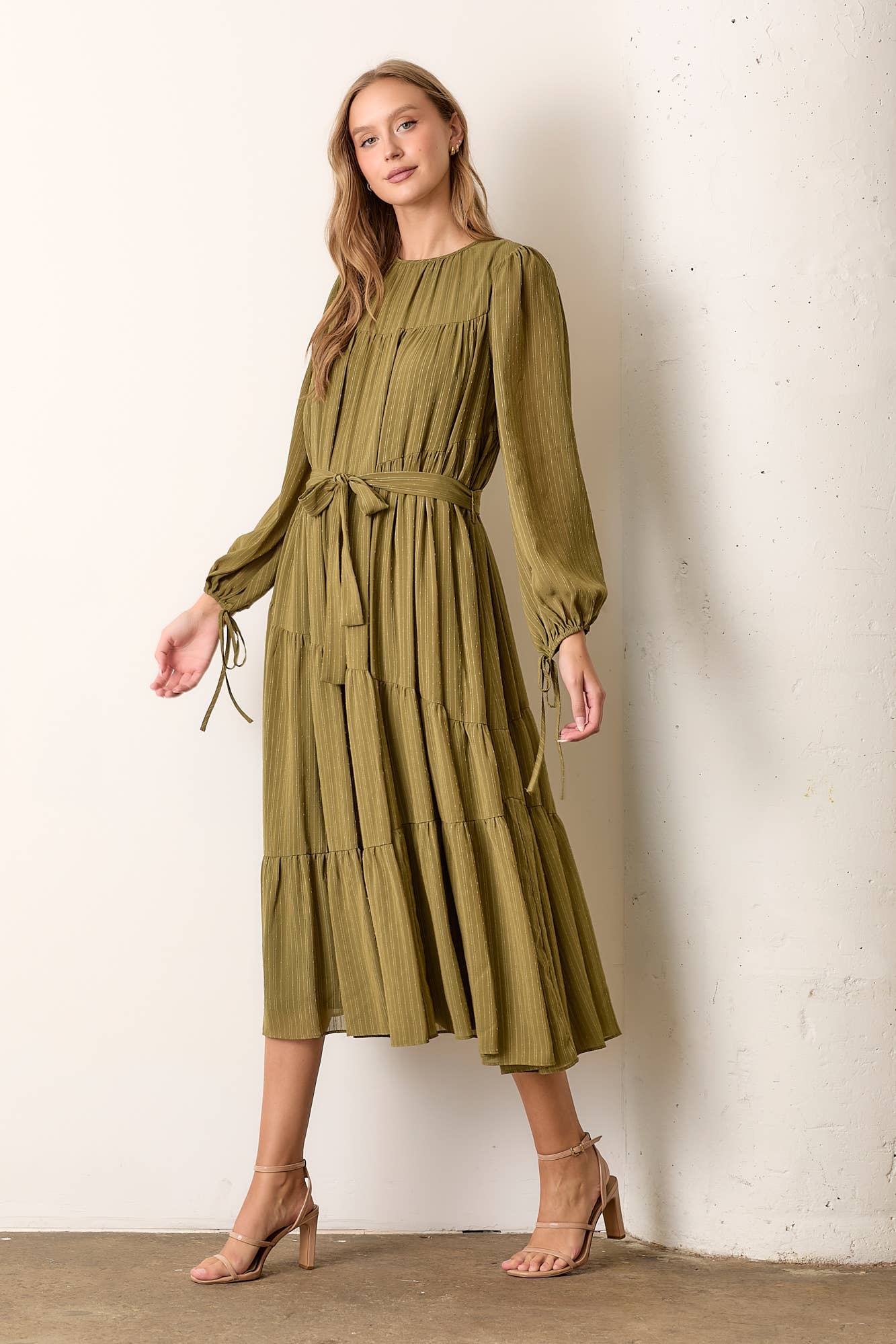 + MAXI DRESS + WAIST TIE + LONG SLEEVE MODEL IS WEARING SIZE S