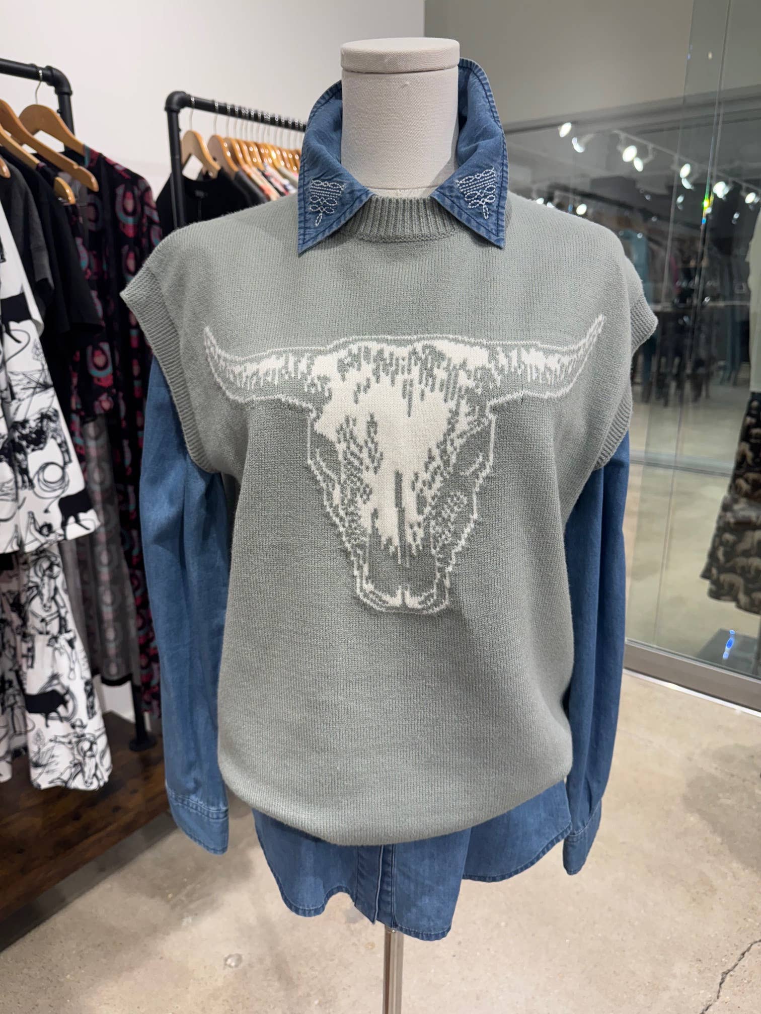 Soft knit pullover sleeveless sweater that can be worn as a top or layered as a vest as shown here. Long sleeve shirt is sold separately. This listing is for the vest only. Runs roomy.