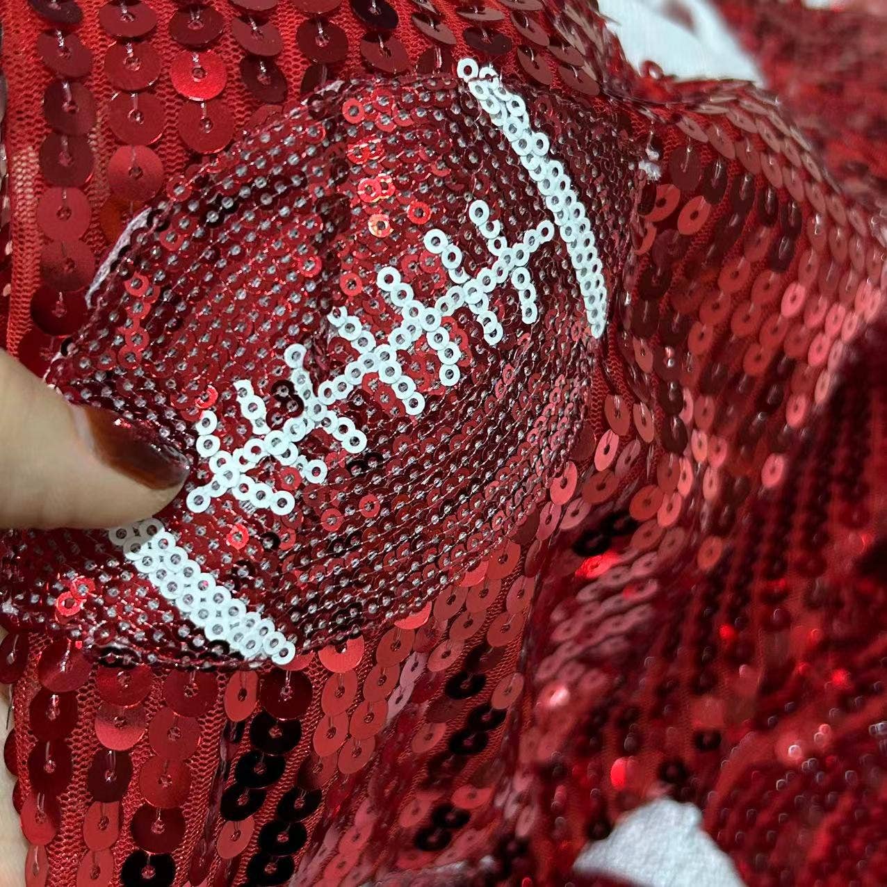 Sequin Football Graphic Tee: Red