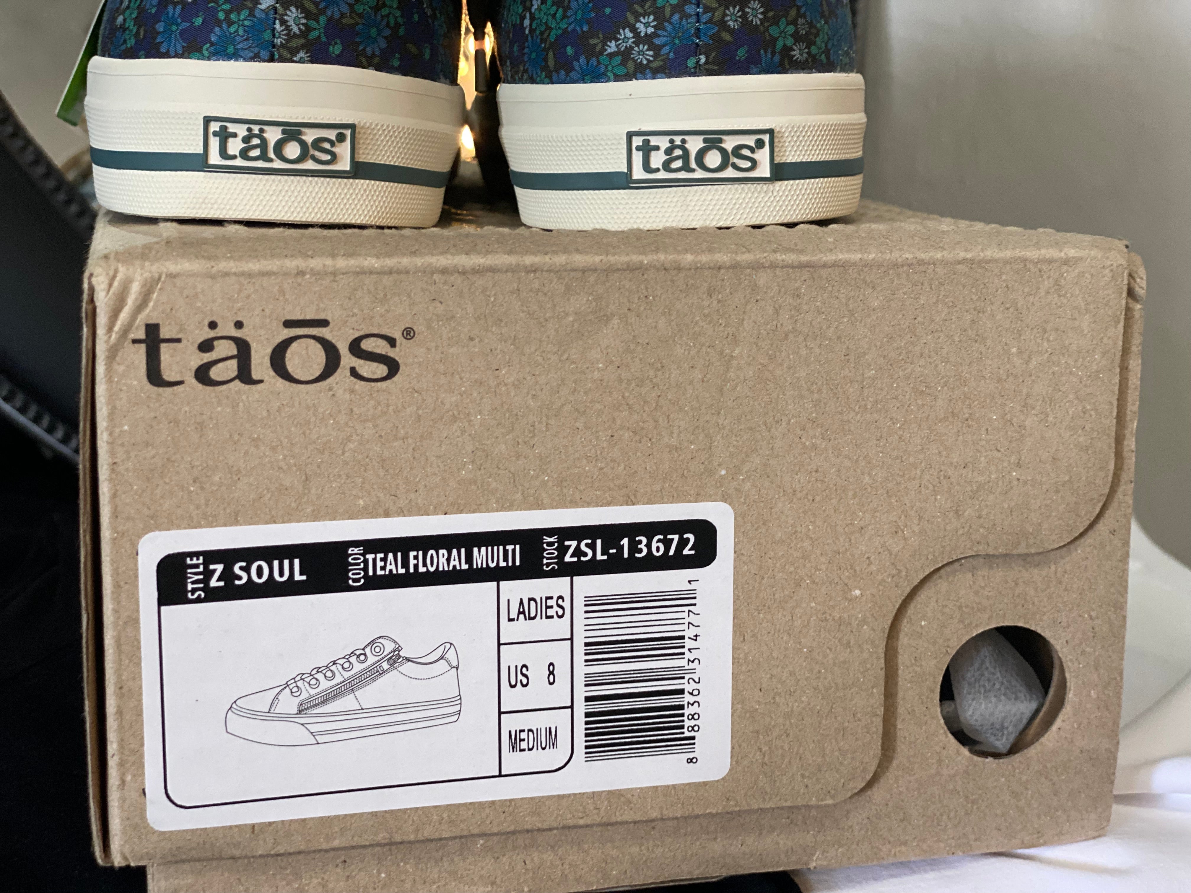 BRAND NEW! Size 8 Teal Floral Multi Colored shoe with zipper.