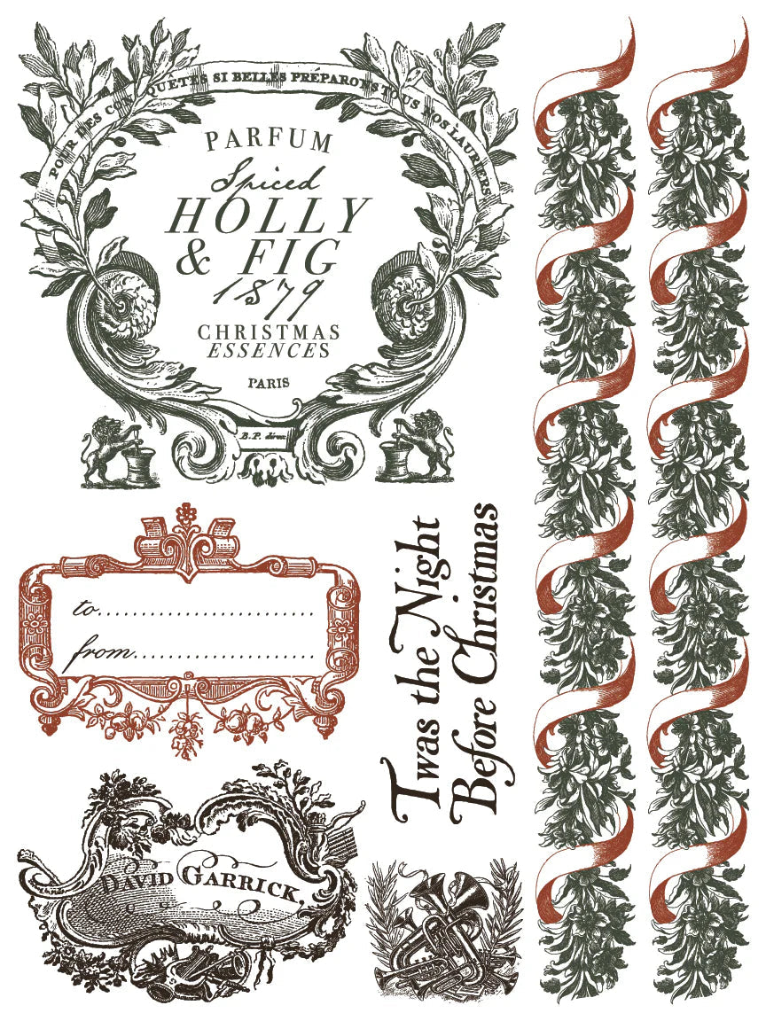 Use Twelfth Night to dress up plain canvas stockings with beautiful vintage art and hang them from gold hooks on the mantle. Welcome French cottage charm into your home with festive engravings on a tree collar or wall plaque. Thrift flip porcelain plates to display in a dining hutch during Christmas gatherings.