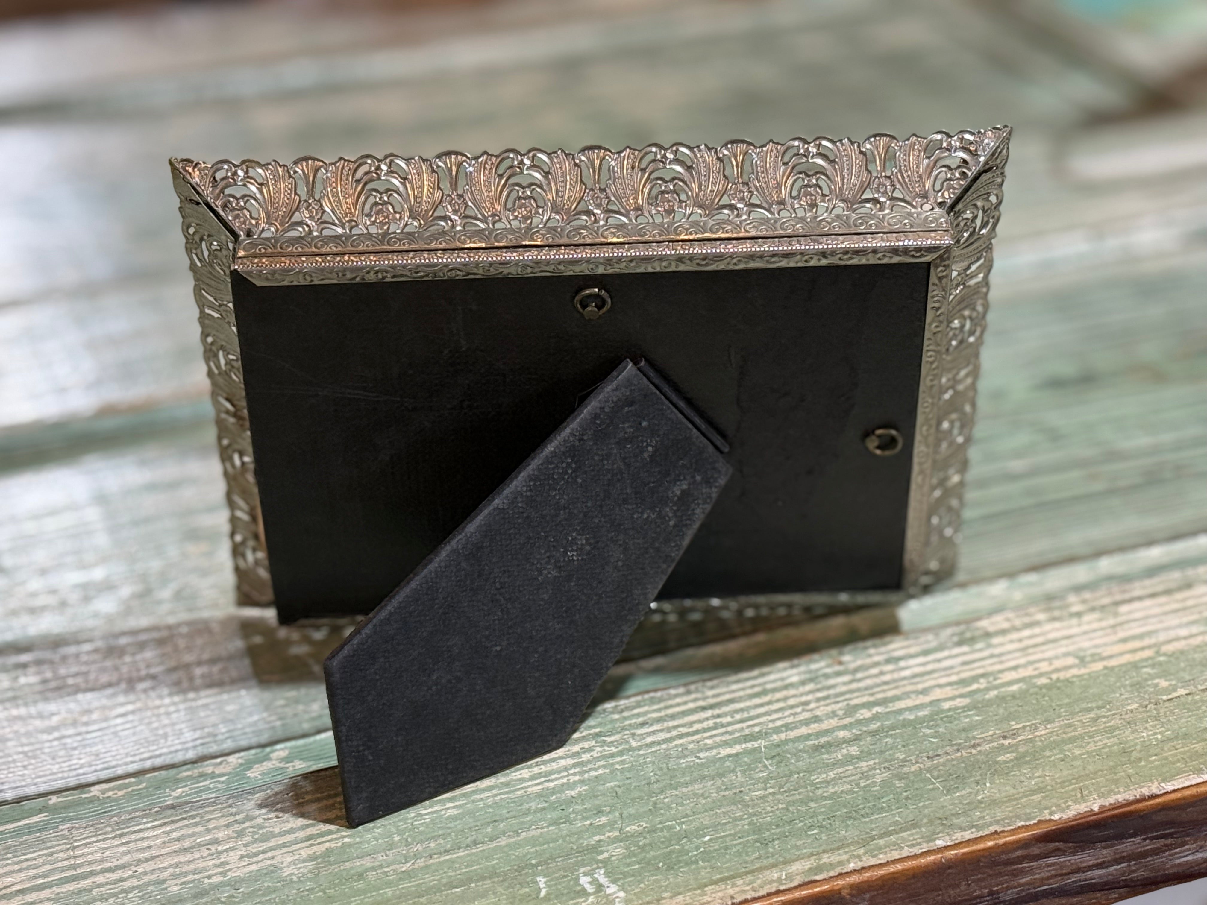 The plaque is housed in an elaborately decorated, silver-colored frame with intricate detailing around the edges.